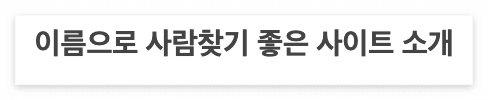 이름으로 사람찾기 좋은 사이트 방법