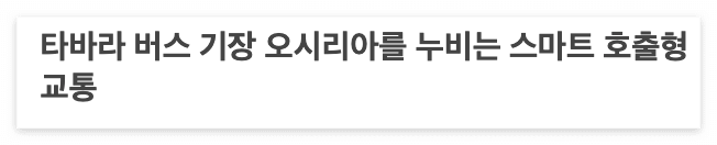타바라 버스를 사용한 기장 송정의 한 주민은 이렇게 말했습니다. “오랫동안 택시 기다릴 필요 없이 타바라 버스를 호출해서 빠르게 이동할 수 있어서 정말 좋아요.”